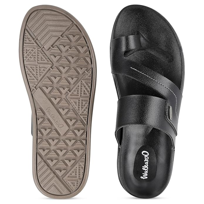 అద్భుతమైన సౌకర్యం మరియు స్టైల్ కలిగిన WALKAROO Comfort Sandal ఫర్ మెన్స్ – WE1335 బ్లాక్ తో ప్రతి అడుగు ప్రత్యేకం. స్టైల్ మరియు రోజంతా సౌకర్యాన్ని కోరుకునే పురుషులకు, ఈ శాండల్‌లో CloudStep డ్యూయల్-డెన్సిటీ PU సొల్ ఉంది, ఇది ప్రతి అడుగుకు అద్భుతమైన కుషనింగ్ మరియు సపోర్ట్‌ను అందిస్తుంది. కేజువల్ వేర్ కోసం అత్యంత సౌకర్యవంతమైన, ఆధునిక మరియు స్టైలిష్ లుక్ కలిగిన ఈ శాండల్స్ ఇల్లు, ఆఫీస్ లేదా అవుటింగ్స్ కోసం సరిపోతాయి. బ్లాక్ కలర్ వలన ఏ దుస్తుతోనైనా సులభంగా మ్యాచ్ అవుతుంది. తేలికైన మరియు మన్నికైన నిర్మాణం వలన పాదాలు అలసట చెందకుండా ఉంటాయి, అలాగే బలమైన అవుట్‌సోల్ యాంటీ-స్లిప్ గ్రిప్‌తో వివిధ ఉపరితలాలపై స్థిరత్వం కల్పిస్తుంది. రోజువారీ ఫుట్‌వేర్‌లో స్టైల్, సౌకర్యం మరియు మన్నికను కోరుకునే పురుషుల కోసం ఇది ఉత్తమ ఎంపిక.
