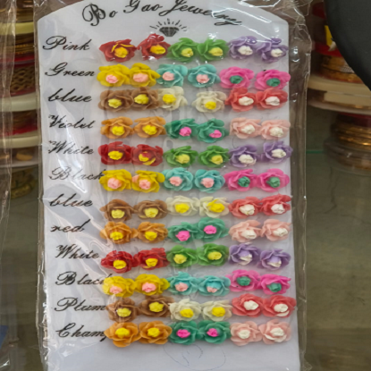 ఇది బో గావో జ్యువెలరీ ఫ్లోరల్ స్టడ్ చెవిపోగులు సెట్ - చిన్న గులాబీలు/పువ్వుల ఆకారంలో రెసిన్/ప్లాస్టిక్తో తయారు చేయబడింది, ఇది రోజువారీ దుస్తులు, సాధారణ సందర్భాలలో, పిల్లలకు మరియు దుస్తులతో తేలికగా సరిపోలడానికి అనుకూలంగా ఉంటుంది.