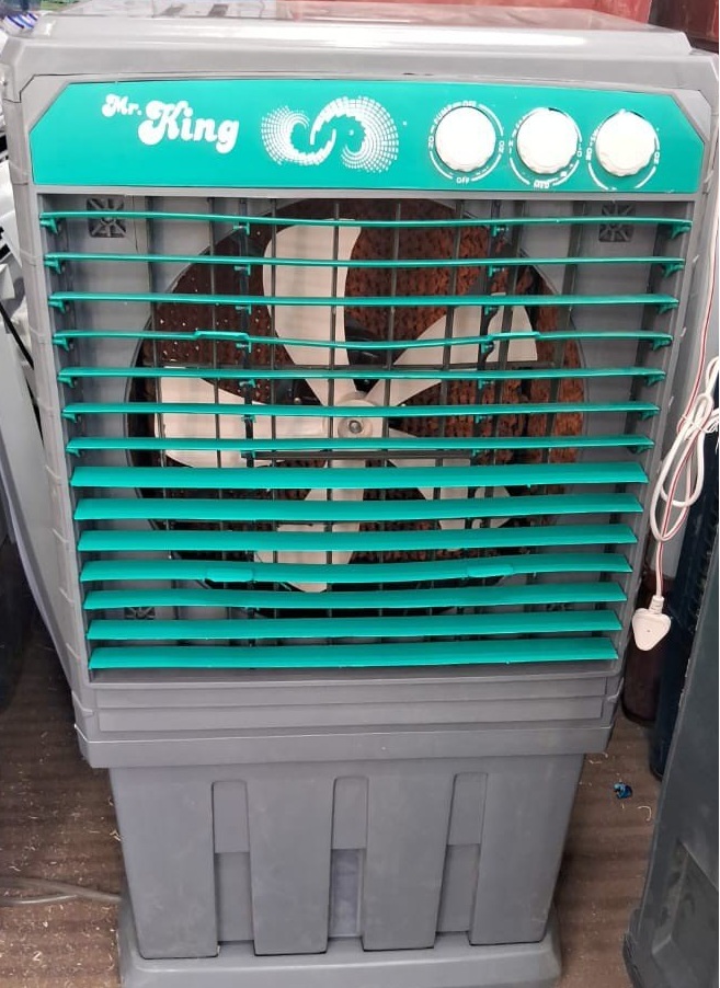 - మిస్టర్ కింగ్ 120 లీటర్ల హై-కెపాసిటీ ఎవాపరేటివ్ ఎయిర్ కూలర్, శక్తివంతమైన కూలింగ్, శక్తి-సమర్థవంతమైన మోటార్, మల్టీ-స్పీడ్ ఫ్యాన్, పెద్ద వాటర్ ట్యాంక్ మరియు ఇళ్ళు మరియు కార్యాలయాల కోసం పోర్టబుల్ ఫ్రీస్టాండింగ్ డిజైన్.