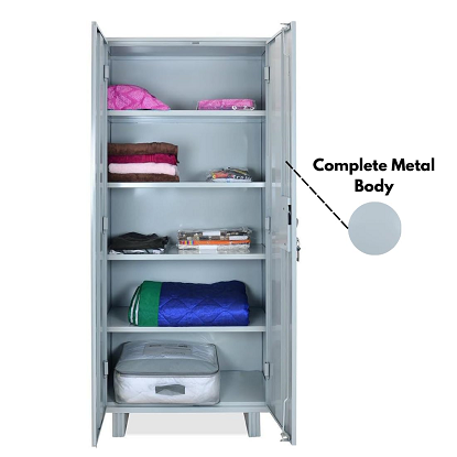 మెటల్ వార్డ్‌రోబ్ | లాకింగ్ సిస్టమ్‌తో కూడిన 2 డోర్ల పెద్ద అల్మిరా కప్‌బోర్డ్ | (పౌడర్ కోటెడ్ బ్లూ 78 X 36 X 19 అంగుళాలు)