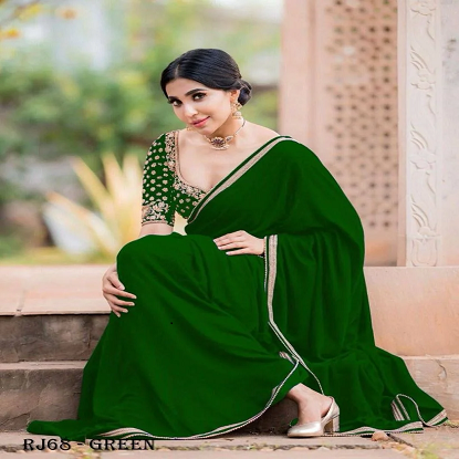 సొగసైన లుక్ - రిచ్ ఎంబ్రాయిడరీ అందాన్ని పెంచుతుంది మరియు విలాసవంతమైన స్పర్శను జోడిస్తుంది. తేలికైనది అయినప్పటికీ గొప్పది - జార్జెట్ ఫాబ్రిక్ సులభంగా అలంకరించబడుతుంది మరియు ఎక్కువ గంటలు తీసుకెళ్లడానికి సౌకర్యంగా ఉంటుంది. బహుముఖ సందర్భోచిత దుస్తులు - వివాహాలు, పార్టీలు, పండుగ కార్యక్రమాలు మరియు సాంప్రదాయ కార్యక్రమాలకు సరైనది. ఫిగర్-ఫ్లాటరింగ్ డ్రేప్ - శరీరంపై అందంగా పడి, సహజ వక్రతలను హైలైట్ చేస్తుంది. మన్నికైన & దీర్ఘకాలం ఉండే - అధిక-నాణ్యత ఫాబ్రిక్ మరియు ఎంబ్రాయిడరీ శాశ్వత ఉపయోగాన్ని నిర్ధారిస్తాయి. పూర్తి సెట్ - సమన్వయంతో కూడిన బ్లౌజ్‌ను కనుగొనడంలో ఇబ్బందిని ఆదా చేసే మ్యాచింగ్ బ్లౌజ్ పీస్‌తో వస్తుంది. టైమ్‌లెస్ ఫ్యాషన్ - ఏదైనా వార్డ్‌రోబ్‌కి క్లాసిక్ అదనంగా, ఆధునిక మరియు సాంప్రదాయ స్టైలింగ్ రెండింటికీ అనుకూలంగా ఉంటుంది.