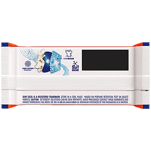 Surf Excel డిటర్జెంట్ బార్ అనేది భారతదేశంలోని అత్యుత్తమ డిటర్జెంట్ బార్, ఇది ప్రత్యేకమైన పేటెంటెడ్ సాంకేతికతతో తయారు చేయబడింది. ఈ బార్లో వినిగర్, బ్లూ, బ్లీచ్ మరియు నిమ్మ వంటి నాలుగు శక్తివంతమైన పదార్థాలు కలిపి, ఒకే ఉత్పత్తిగా తయారు చేయబడింది. ఇది కఠినమైన మచ్చలను సులభంగా తొలగించడంలో సహాయపడుతుంది – అందువల్ల మీరు సేవ్ చేసుకోగలరు సమయం, ఖర్చు మరియు శ్రమ.