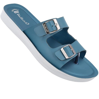 రంగు: పీకాక్ బ్లూ ఉపయోగాలు: సాధారణ దుస్తులు: ఈ చెప్పులు రోజువారీ, సాధారణ ఉపయోగం కోసం రూపొందించబడ్డాయి. వాటి ఓపెన్-టో డిజైన్ మరియు సౌకర్యవంతమైన రూపం వాటిని చిన్న చిన్న పనులు నడపడం, షాపింగ్‌కు వెళ్లడం లేదా పార్కులో నడవడం వంటి కార్యకలాపాలకు అనుకూలంగా చేస్తాయి. సౌకర్యం: ఫ్లాట్ సోల్‌తో, అవి ఎక్కువసేపు నడవడానికి లేదా నిలబడటానికి చాలా సౌకర్యంగా ఉంటాయి, మీరు మీ పాదాలను చల్లగా మరియు విశ్రాంతిగా ఉంచుకోవాలనుకున్నప్పుడు వెచ్చని వాతావరణానికి ఇవి మంచి ఎంపికగా మారుతాయి. బహుముఖ స్టైలింగ్:షార్ట్స్, కాప్రిస్, స్కర్టులు మరియు వేసవి దుస్తులతో సహా వివిధ రకాల సాధారణ దుస్తులతో వీటిని సులభంగా జత చేయవచ్చు. ప్రయాణం: వాటి తేలికైన మరియు ప్యాక్ చేయడానికి సులభమైన డిజైన్ ప్రయాణానికి, ముఖ్యంగా వెచ్చని గమ్యస్థానాలకు సెలవులకు వాటిని ఆచరణాత్మక ఎంపికగా చేస్తుంది.